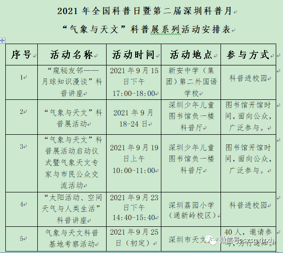 附2、2021年全国科普日暨第二届深圳科普月“气象与天文”科普系列活动安排表