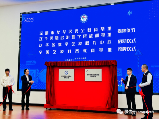 深圳市气象局党组成员、副局长兰红平同志,深圳市龙华区委常委、常务副区长徐志斌同志,深圳市龙华区应急管理局局长蒋翔同志,深圳市龙华建设发展集团有限公司董事长方东明同志四位领导共同揭牌