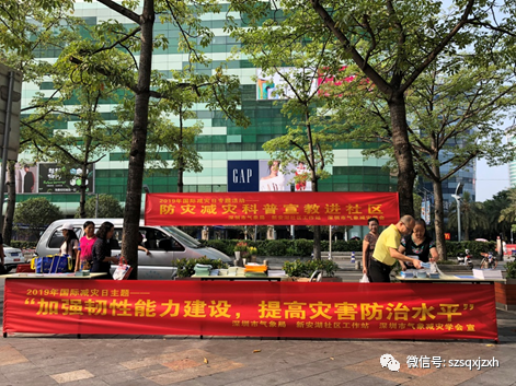 1、2019年国际减灾日,我会在宝安新安湖社区开展“防灾减灾科普进社区”活动。
