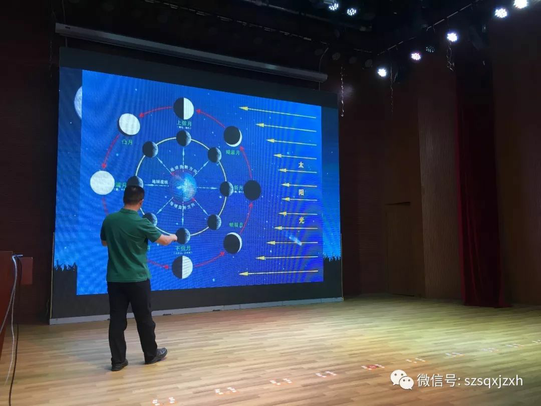 恰逢传统中秋佳节,为弘扬传统文化,活动邀请深圳市天文台天文观测部副部长王栋博士做了“窥密友邻——月球知识漫谈”主题讲座,并与观展市民互动交流,王博士讲解深入浅出,生动活泼,激起了大家,尤其是现场小朋友们的极大兴趣。广西师范大学退休教授,现在深圳从事国学教育普及的陆卡娅女士,对能在深圳参与如此高水平的天文科普活动赞不绝口。