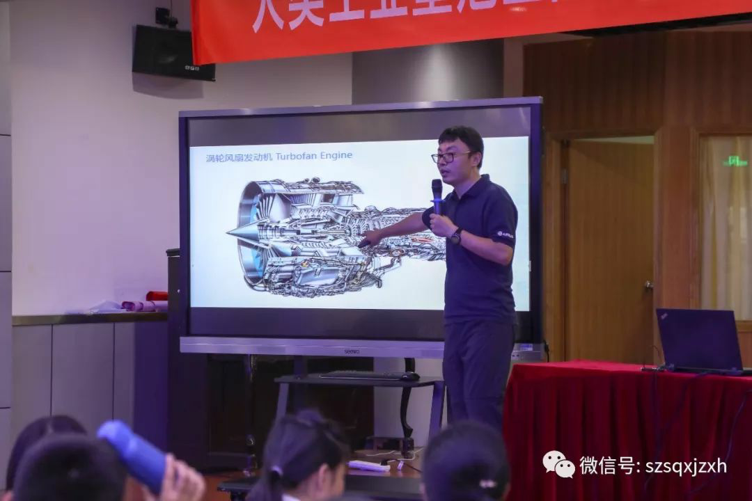 李辉老师结合航空工业发展史、千奇百怪的航空器,给孩子们系统讲述了航空发动机简史,发动机从活塞时代到喷气时代的技术变迁;活塞时代——螺旋桨航空发动机的结构、工艺、工作原理应用及其优势缺点;喷气时代——航空涡轮发动机的结构分类、制作工艺、工作原理应用及其优势缺点,以及研制航空发动机主要难在哪里等内容。
