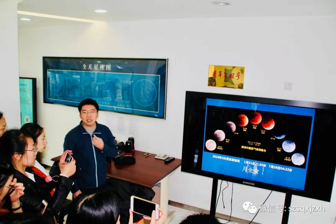 在天文科普展厅内,一行人有的站在天体称上感受自己在不同星体上的重量变化,有的在以地球为中心的宇宙星系模型上寻找着属于自己的星座,充分体验着不曾有的新奇。最后,工作人员为大家播放了深圳市天文台精心制作的天文科普片,斗转星移,浩瀚宇宙,大家脑洞大开,太多平日不可捉摸的天象得到了合理解释。影片结束,科普展厅响起了热烈的掌声。