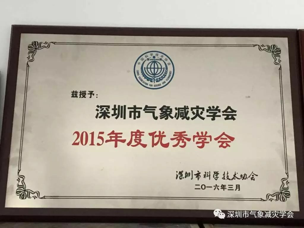 深圳市气象减灾学会于2016年荣获“2015年度优秀学会”的荣誉称号以及在社会组织的评估等级中荣获“4A”等级。学会将带着这些殊荣继续前进,将在以后的活动中更加努力,紧密跟随科协、社会组织的脚步,为社会公益服务做出更大的努力。(秘书处 胡敏)