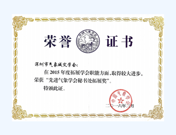 荣获中国气象学会2015年度 “先进气象学会秘书处拓展奖”