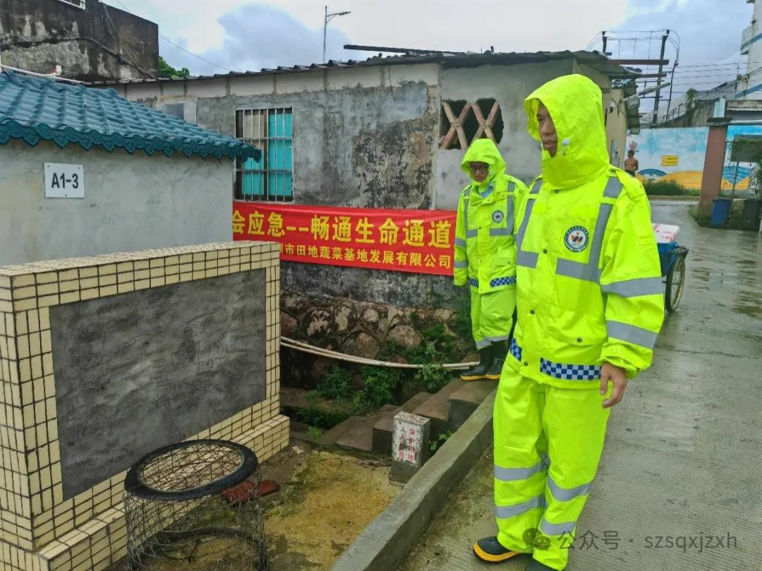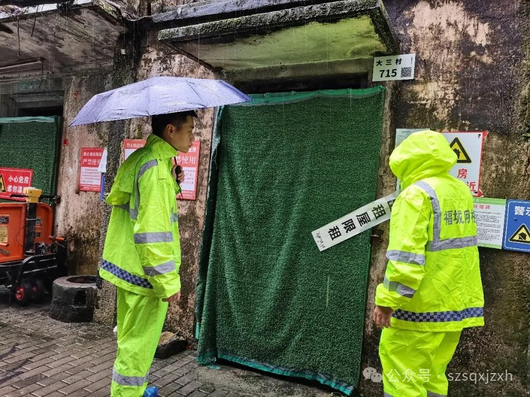 香蜜湖街道网格员冒雨巡查守护居民安全