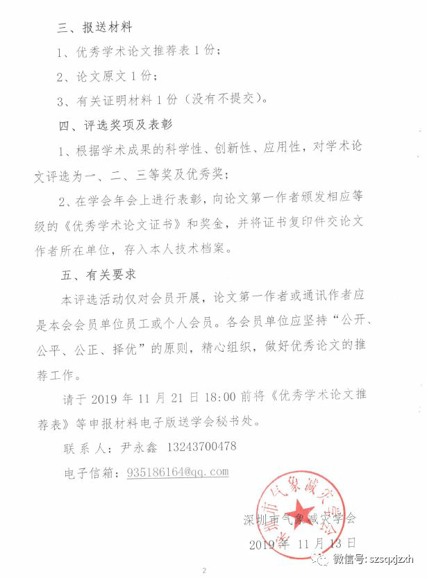 请于2019年11月21日18:00前将《优秀学术论文推荐表》等申报材料电子版送学会秘书处。