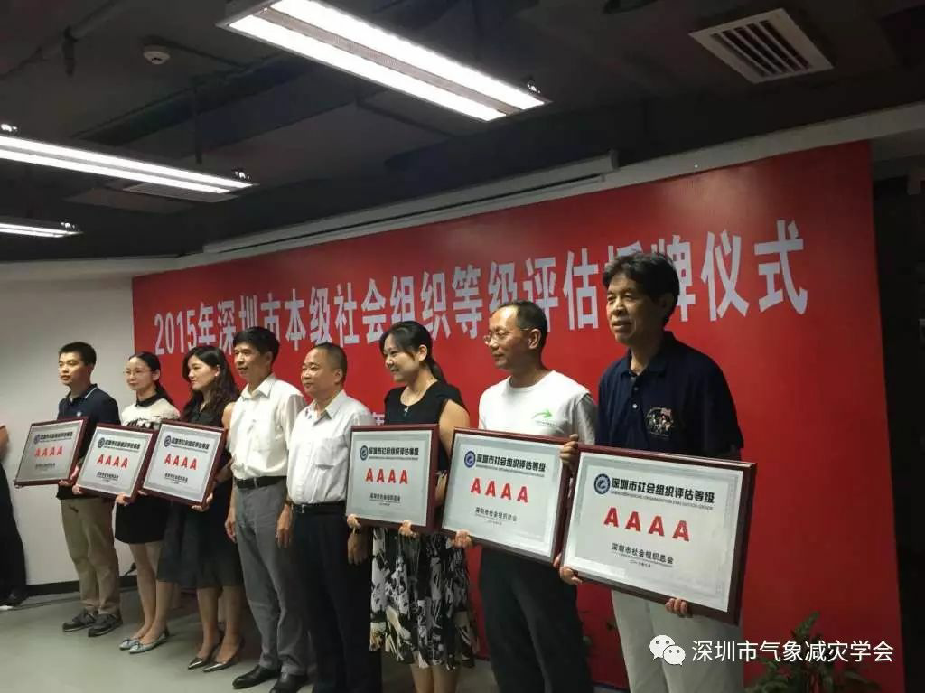 深圳市气象减灾学会于2016年荣获“2015年度优秀学会”的荣誉称号以及在社会组织的评估等级中荣获“4A”等级。学会将带着这些殊荣继续前进,将在以后的活动中更加努力,紧密跟随科协、社会组织的脚步,为社会公益服务做出更大的努力。(秘书处 胡敏)
